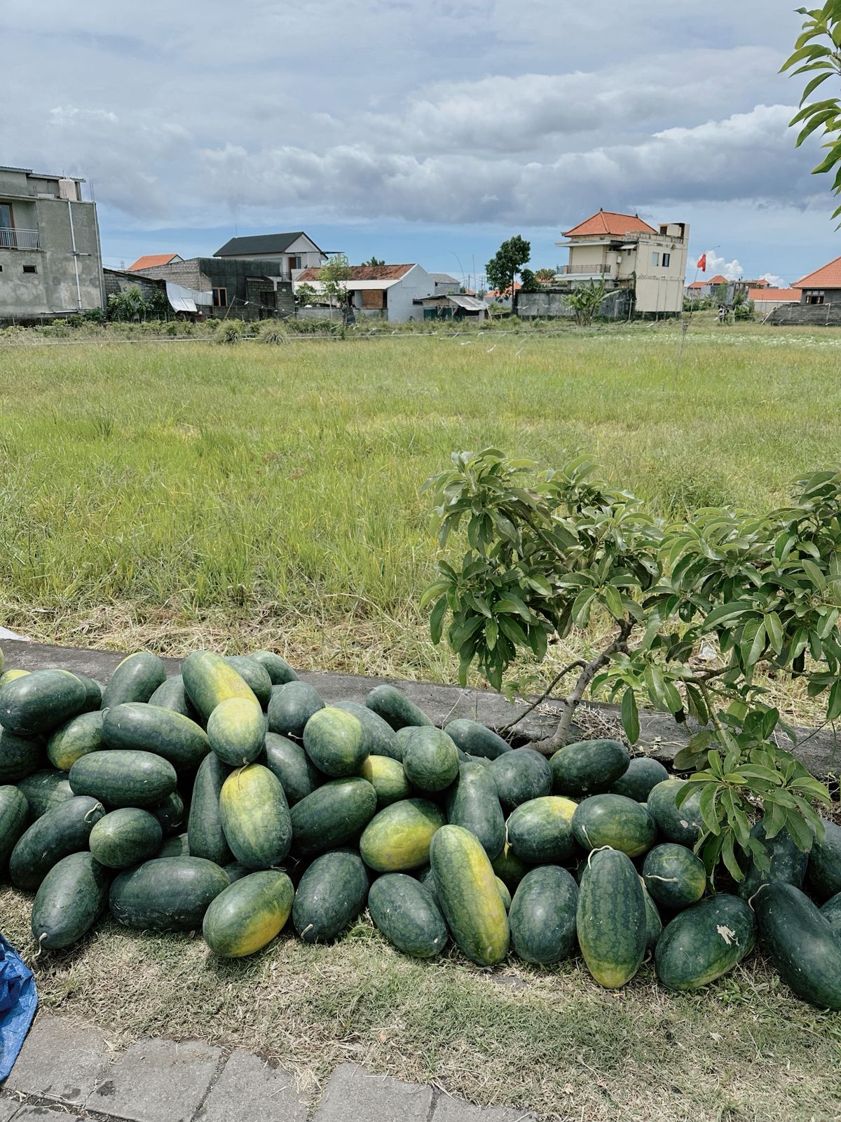 すっかりブログ発信を怠っておりましたが、昨年11月のガルンガン(迎え盆)の頃、我が家の近くの散歩道で大量のスイカが収穫され直販されていました。