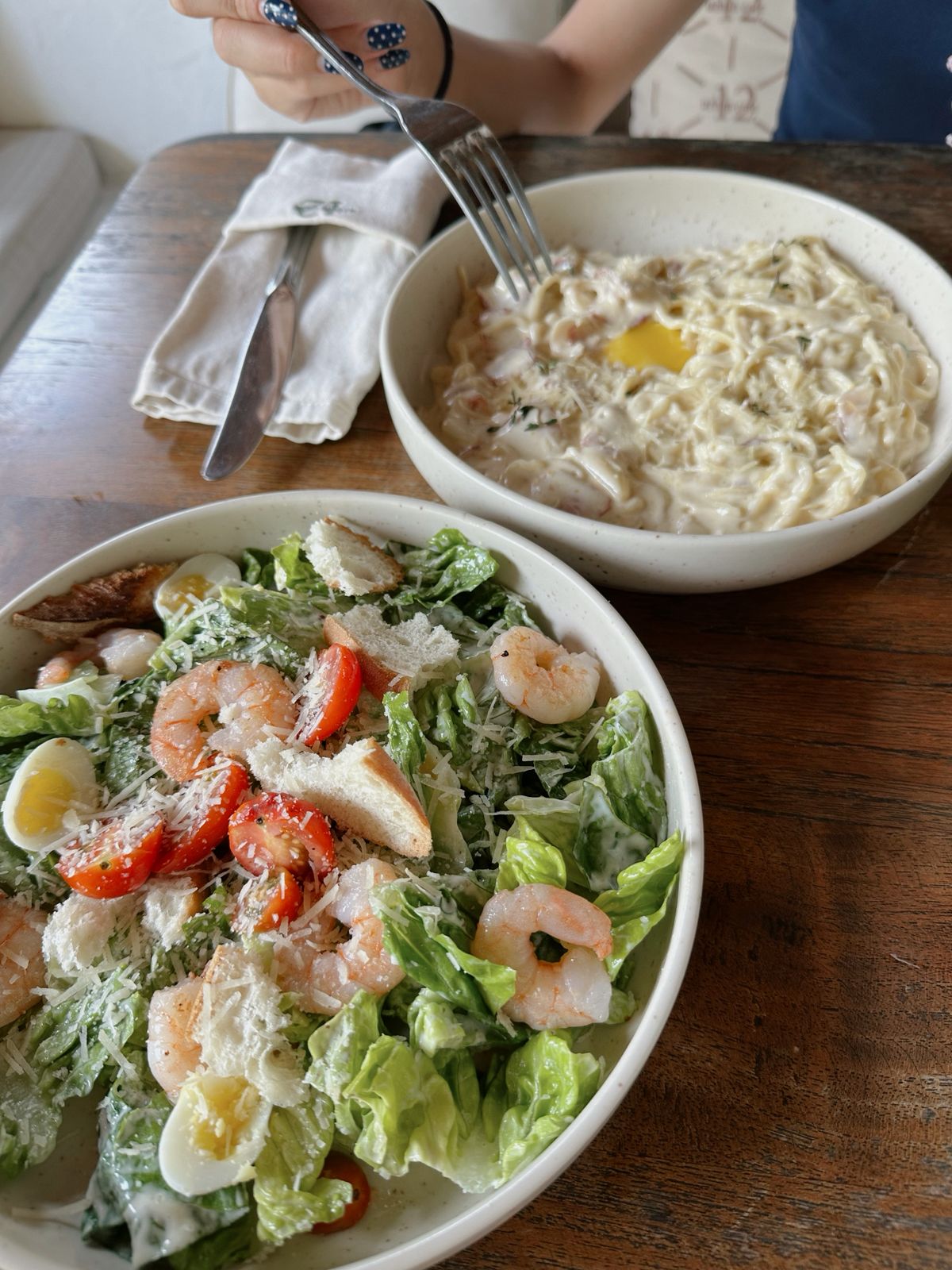 シーザーサラダとカルボナーラを頼みました。
